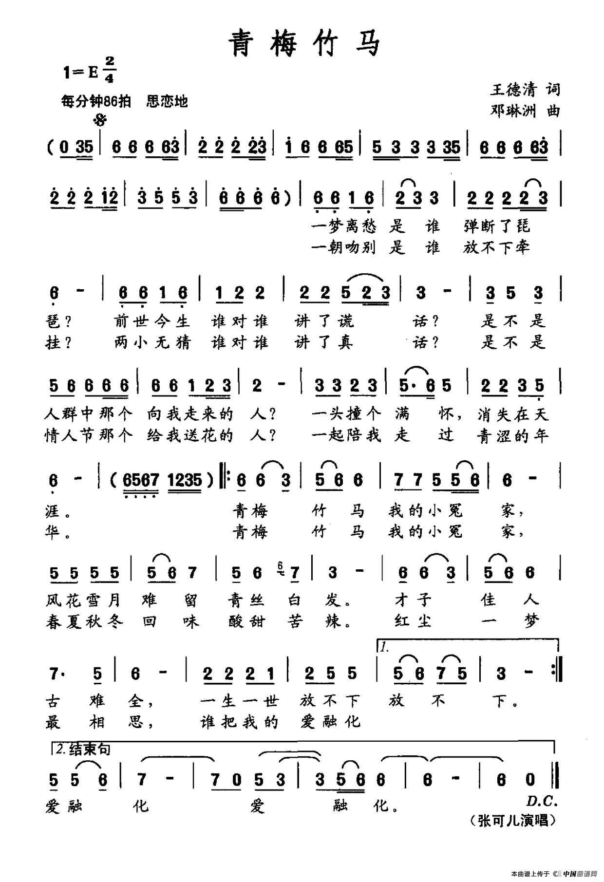 关于《青梅竹马》曲谱的评论