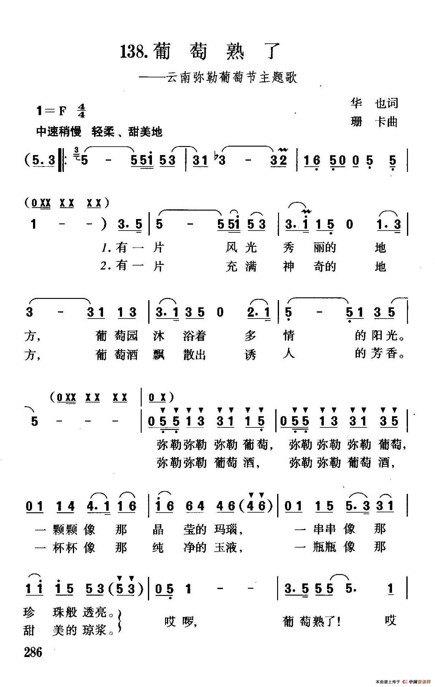 关于《葡萄熟了》曲谱的评论