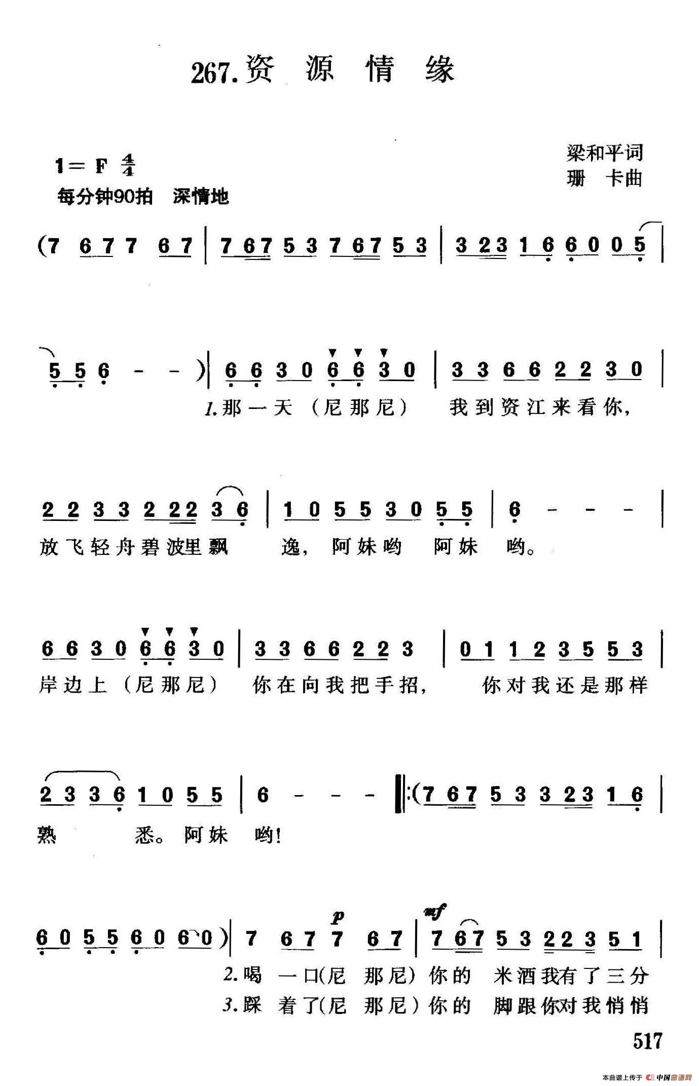关于《资源情缘》曲谱的评论