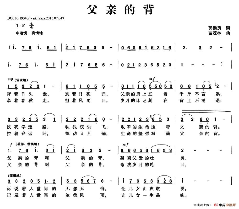 关于《父亲的背》曲谱的评论