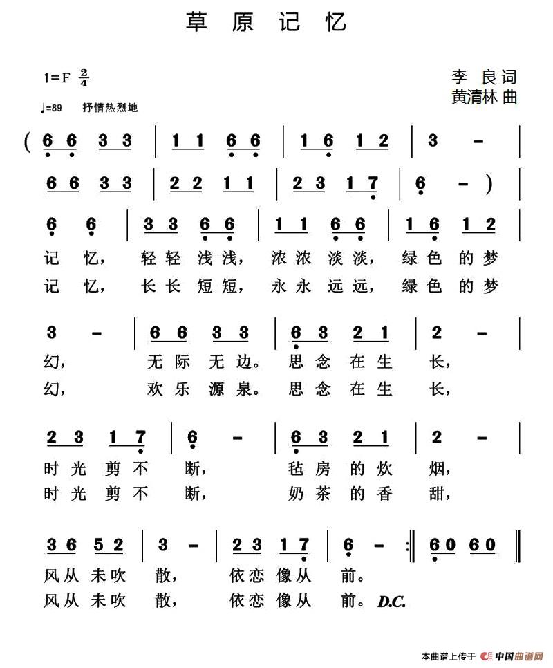 关于《草原记忆》曲谱的评论