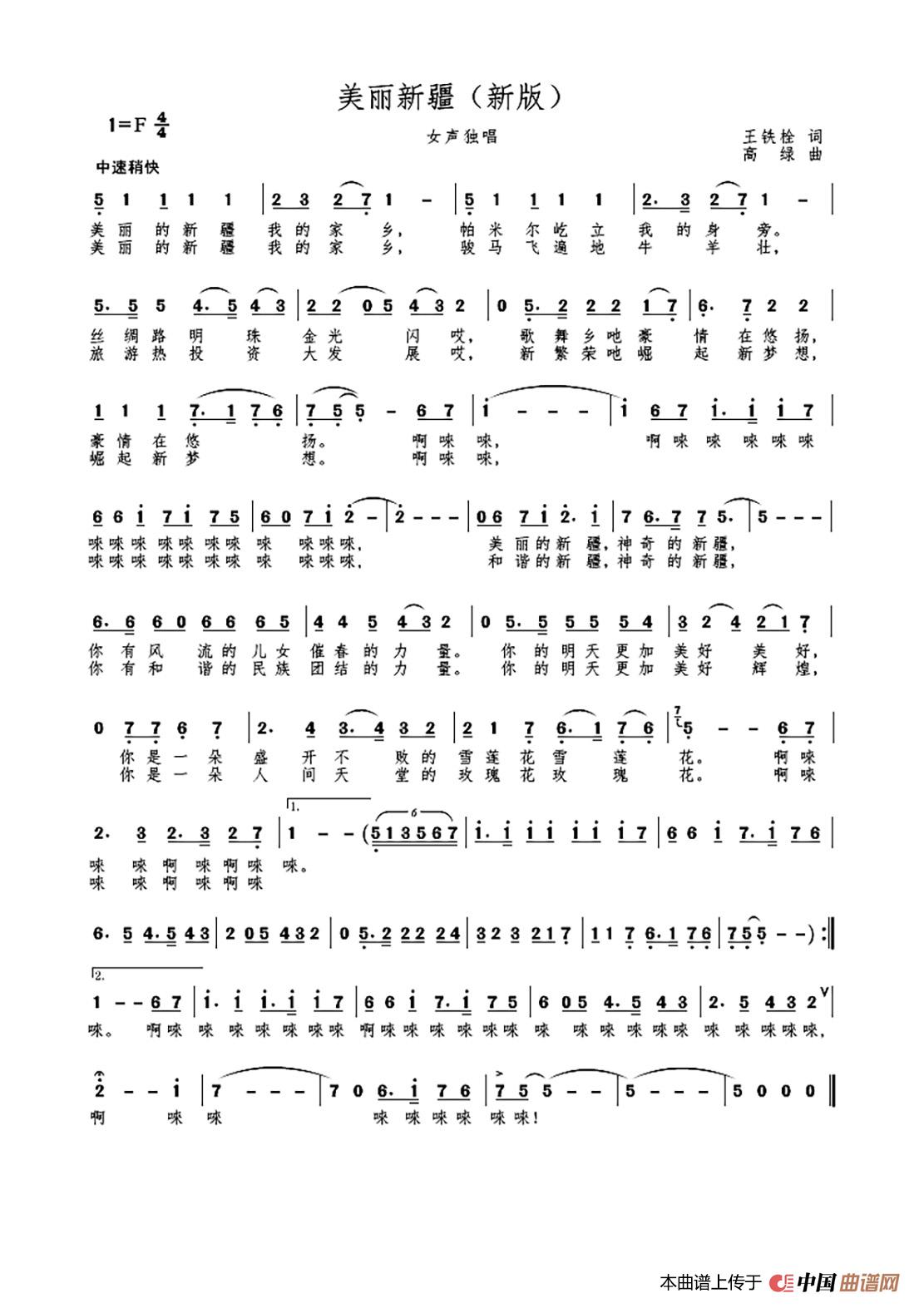 关于《美丽新疆 (20209新版)》曲谱的评论