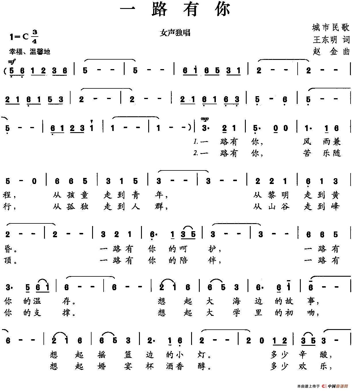 当前位置: 首页 民歌曲谱 四字歌名 一路有你(王东明词 赵金曲)