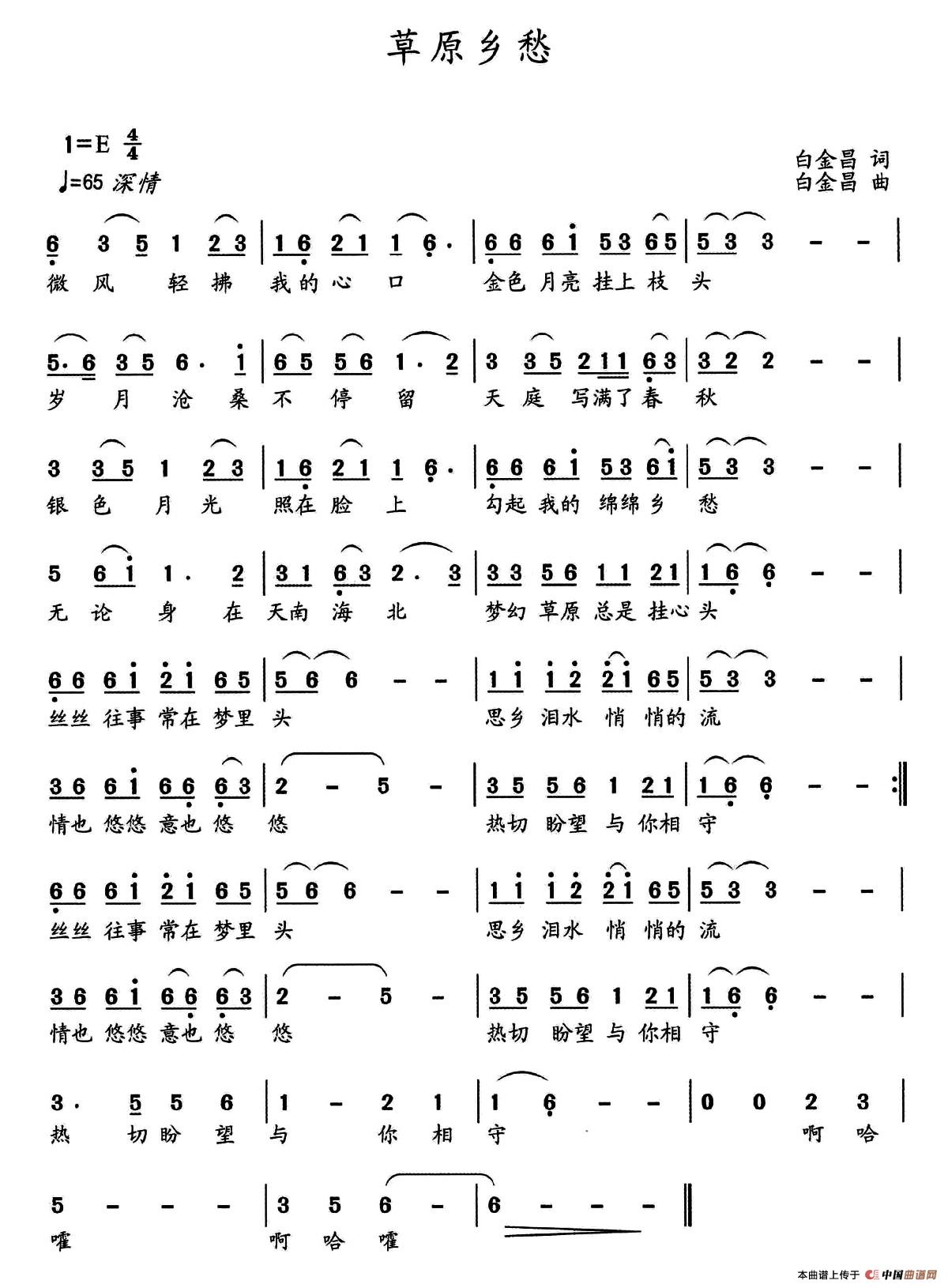 关于《草原乡愁》曲谱的评论