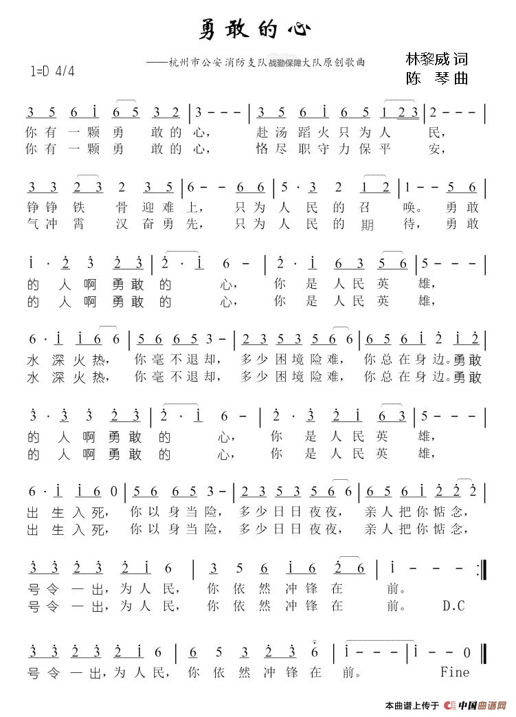 勇敢的心(林黎威词 陈琴曲)