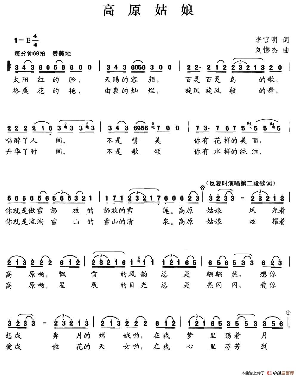 关于《高原姑娘》曲谱的评论
