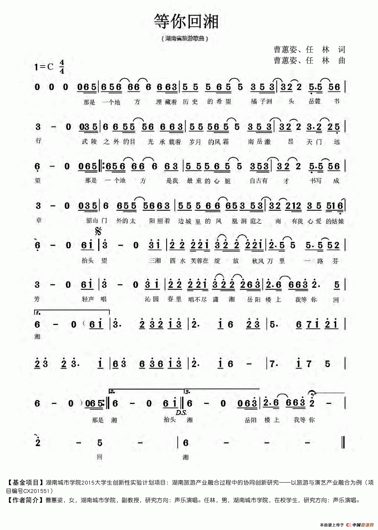 作词:曹蕙姿 任林 作曲:曹蕙姿 任林 来源:《中国曲谱网》 上传:沉舟侧畔过