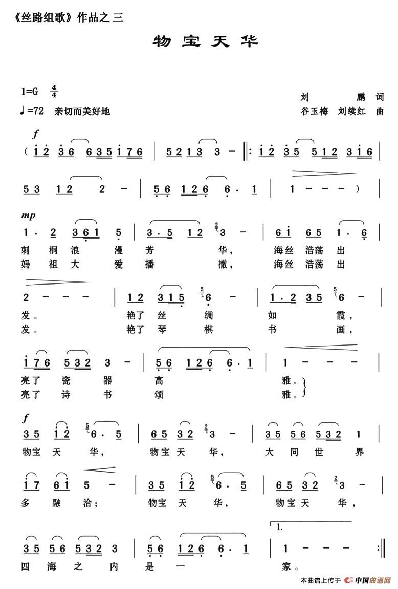 致谢:《中国曲谱网》衷心感谢作者老师馈赠原版歌谱!