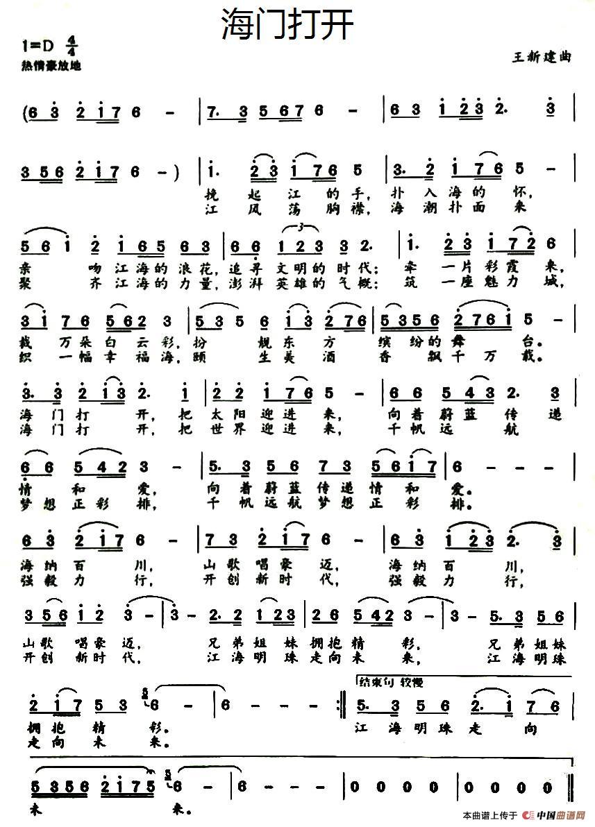致谢:《中国曲谱网》衷心感谢作者老师馈赠原版歌谱!