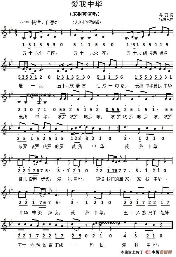 爱我中华(线简谱对照版)(1)_原文件名:爱我中华(线简谱对照版)乔羽词 徐沛东曲 宋祖英演唱.jpg