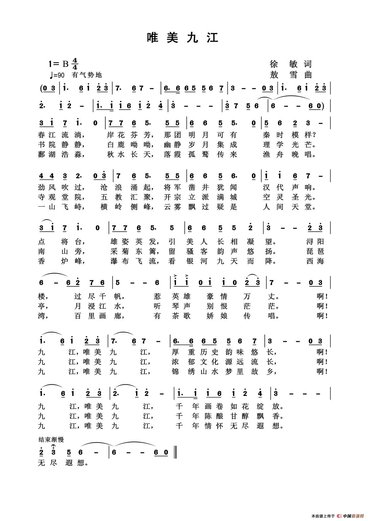 关于《唯美九江》曲谱的评论