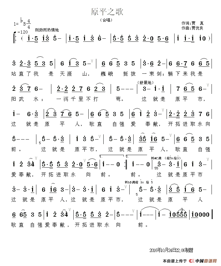 作词:贾真 作曲:贾优良 来源:根据手稿使用作曲软件 上传:路luzhihong