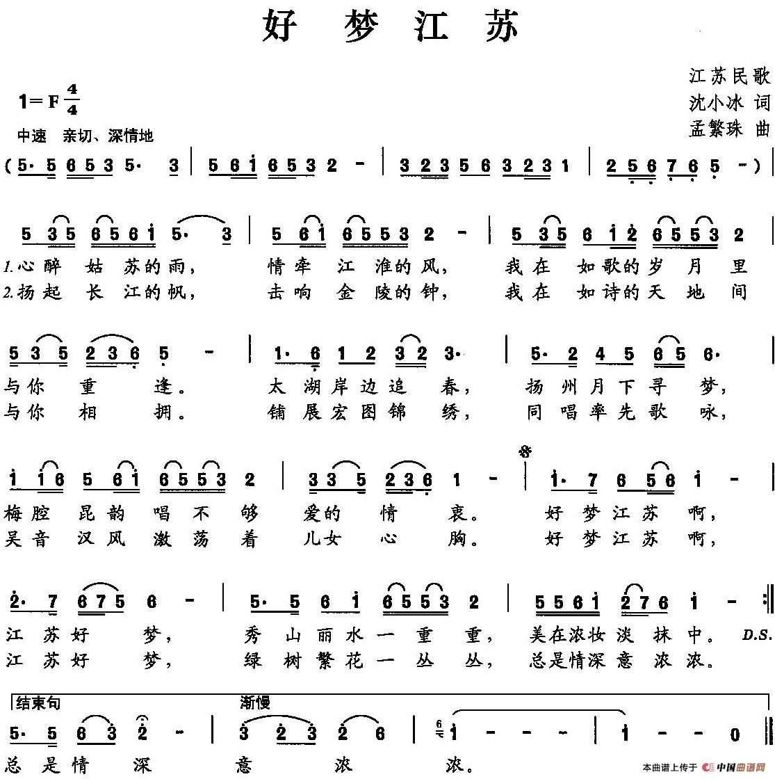 关于《好梦江苏》曲谱的评论