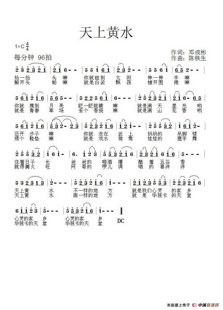 当前位置: 首页 民歌曲谱 四字歌名 天上黄水