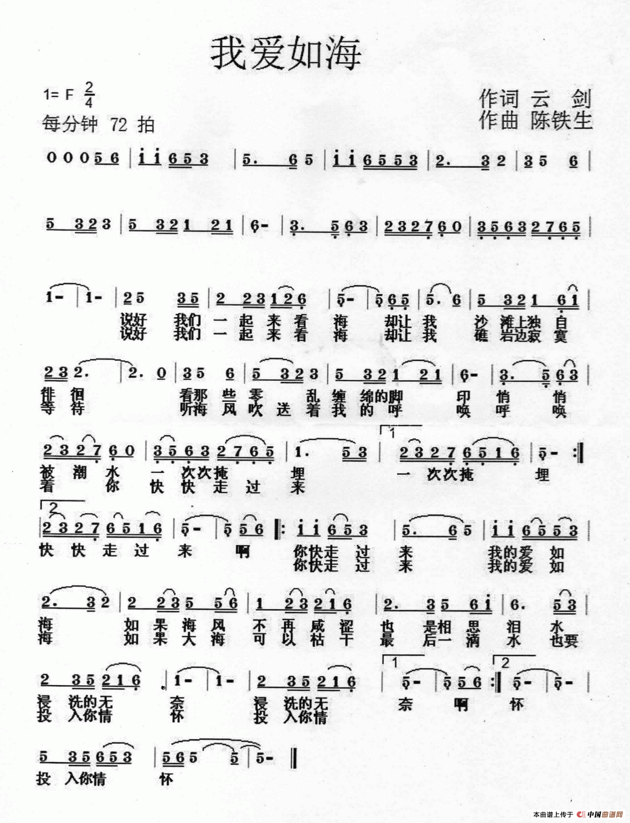 关于《我爱如海》曲谱的评论
