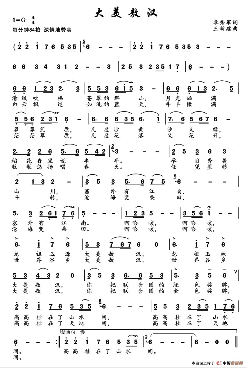 致谢:《中国曲谱网》衷心感谢作者老师馈赠原版歌谱!