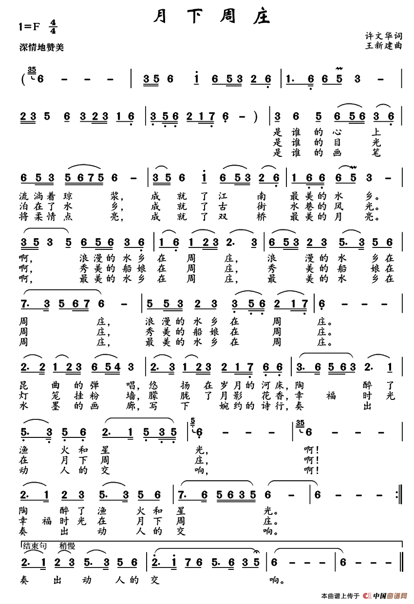 关于《月下周庄》曲谱的评论