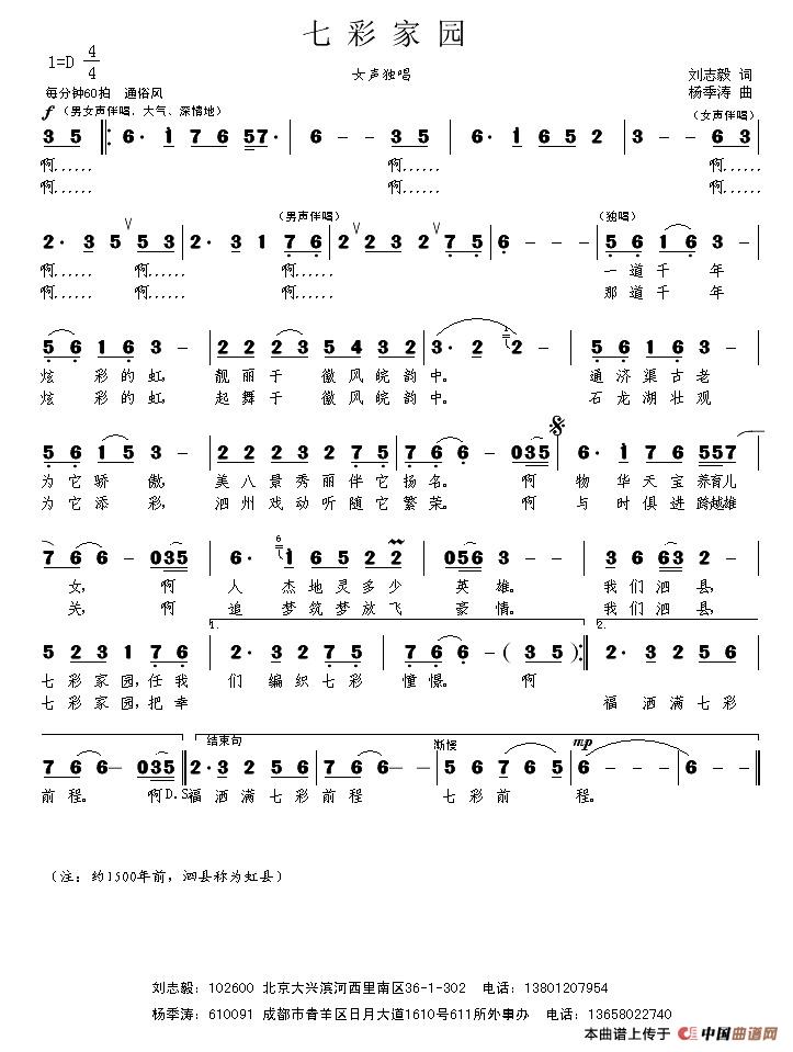 致谢:《中国曲谱网》衷心感谢作者老师馈赠原版歌谱!