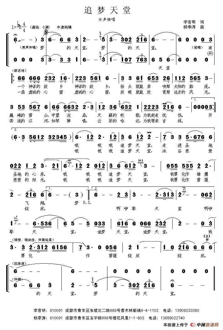关于《追梦天堂》曲谱的评论