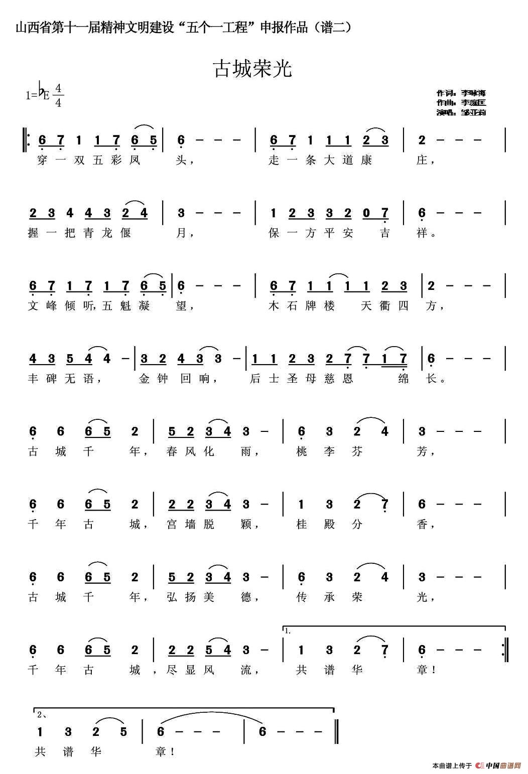 关于《石城荣光》曲谱的评论