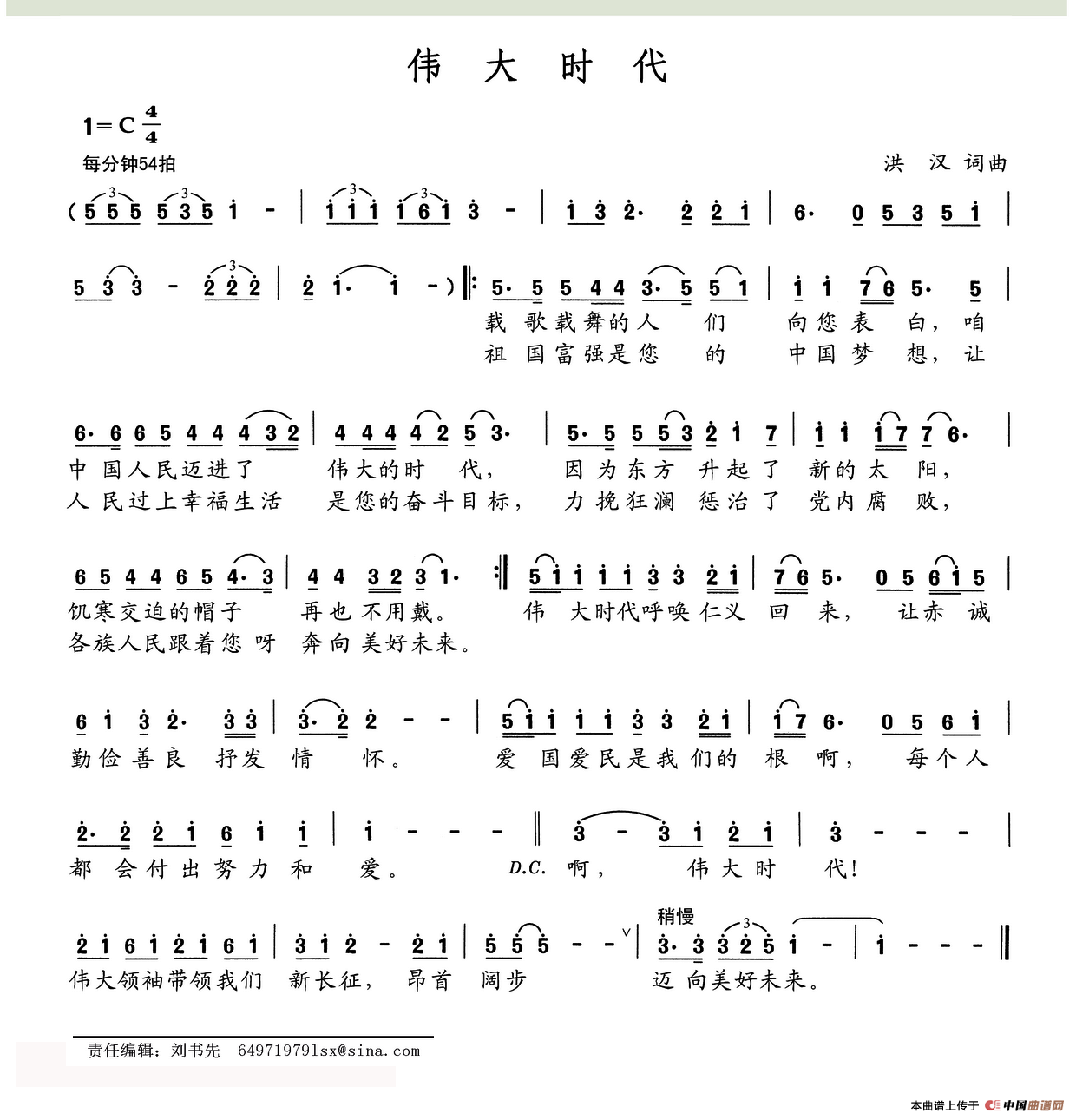 关于《伟大时代》曲谱的评论