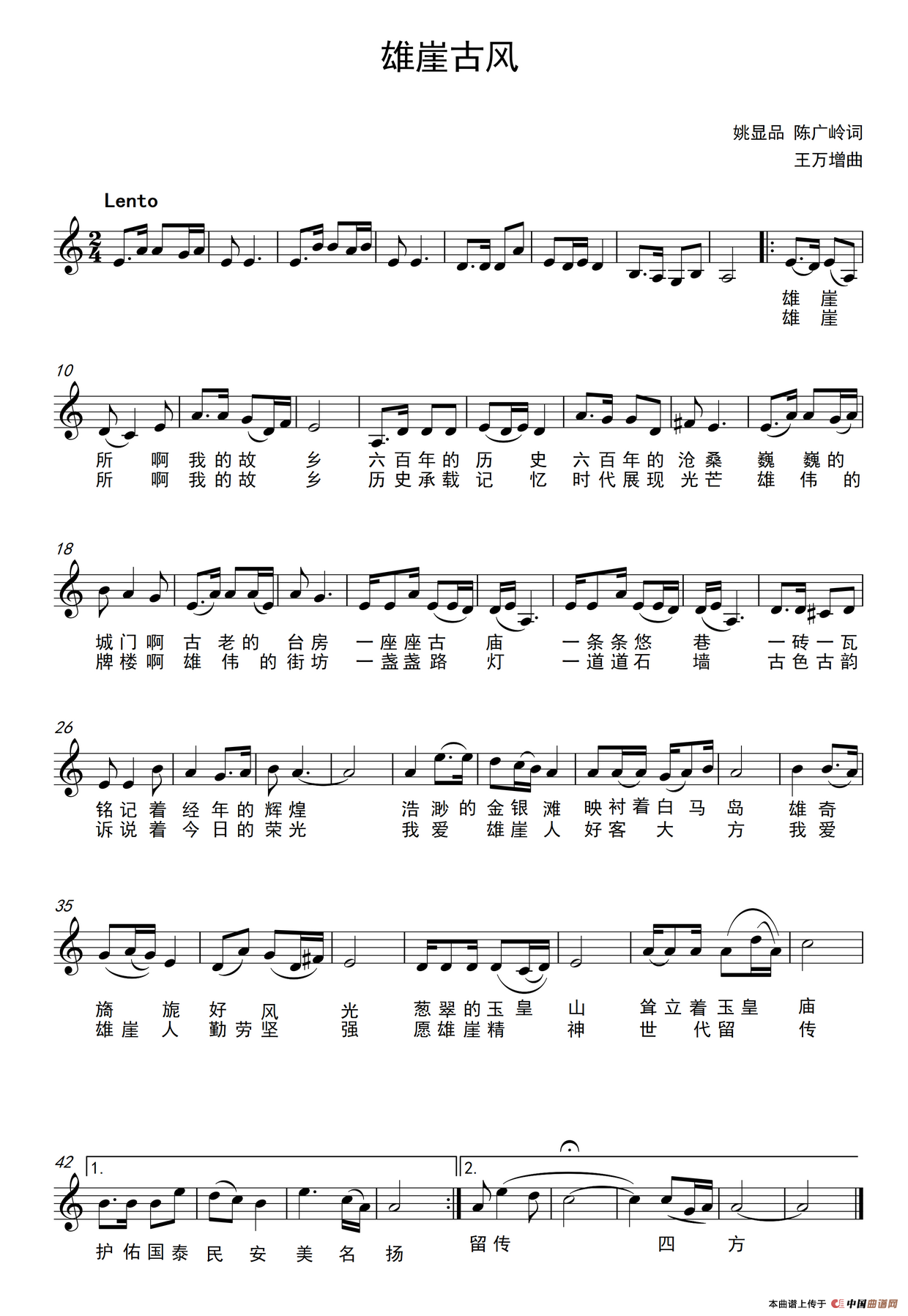 关于《雄崖古风》曲谱的评论
