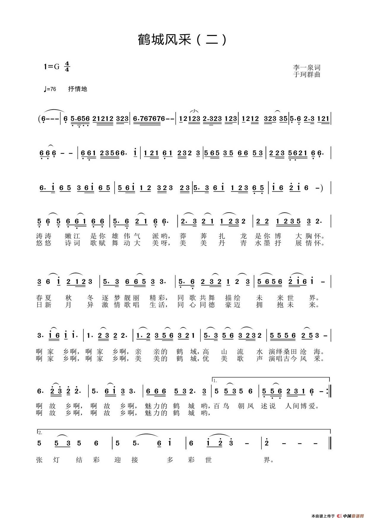 关于《鹤城风采》曲谱的评论