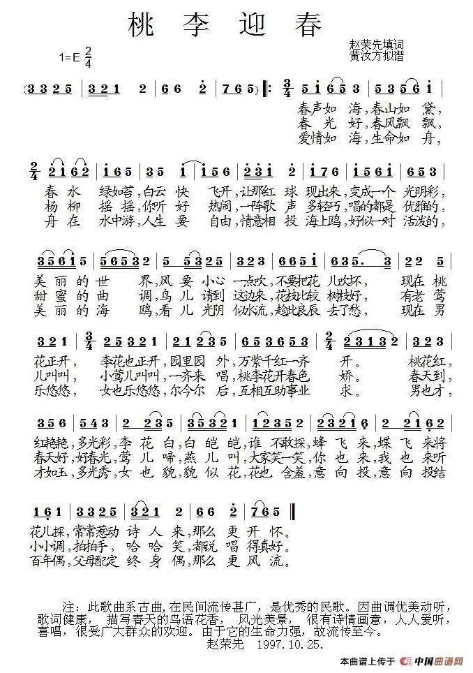 作词:赵荣先搜集 作曲:黄汝方拟谱 来源:谱友廖光明上传 上传:廖光明