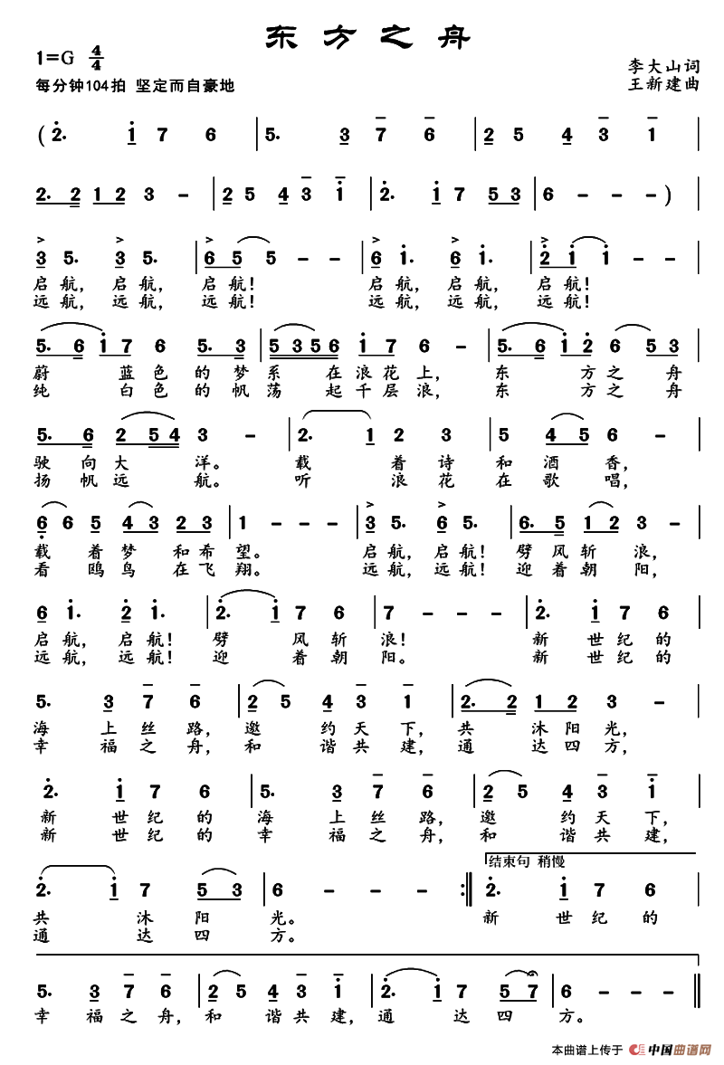 关于《东方之舟》曲谱的评论