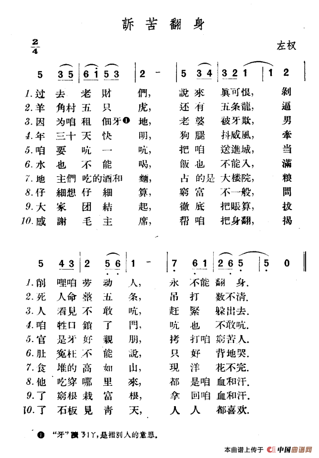 关于《诉苦翻身》曲谱的评论