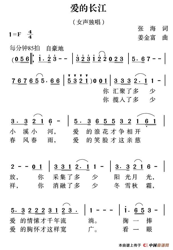 关于《爱的长江》曲谱的评论