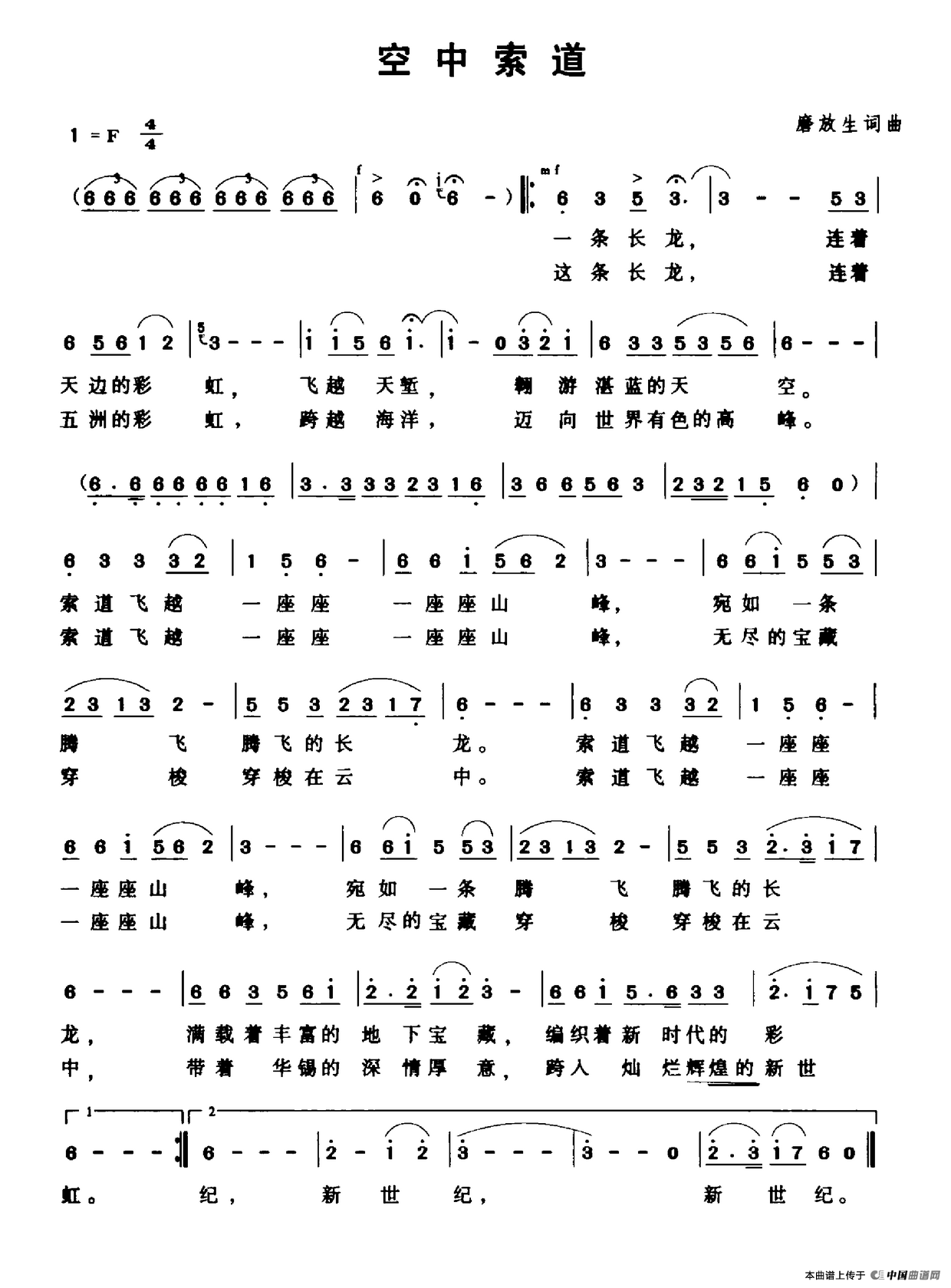 作词:磨放生 作曲:磨放生 来源:《中国曲谱网》 上传:沉舟侧畔过