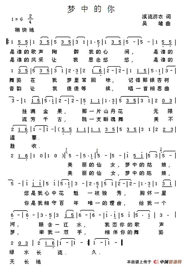 提示:在曲谱图片上单击右键,选择“图片另存为...”即可将曲谱保存到您的电脑中,打印时候可将图片插入到WORD中,调整合适大小打印即可。