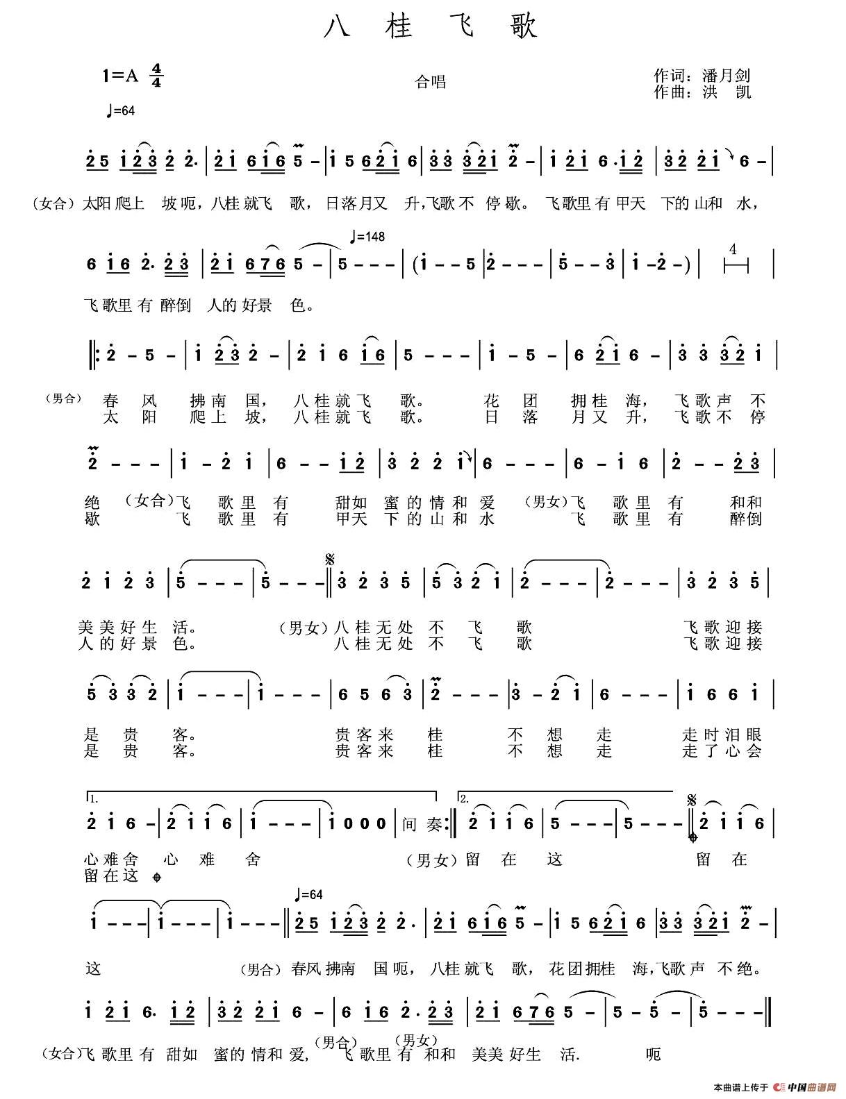 关于《八桂飞歌》曲谱的评论