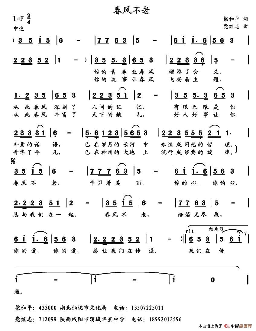 关于《春风不老》曲谱的评论