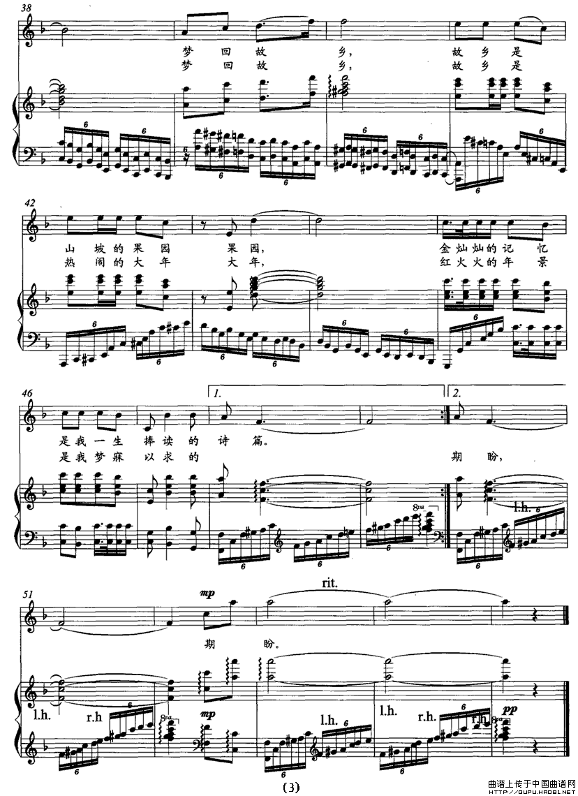 关于《梦回故乡》曲谱的评论