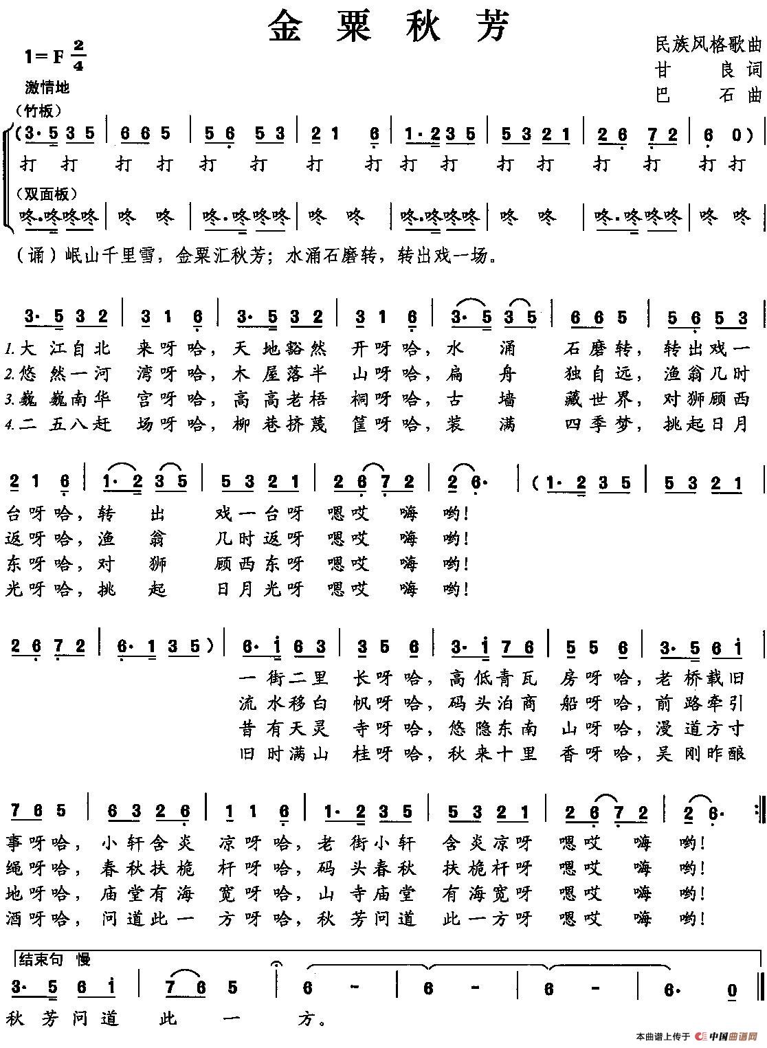 关于《金粟秋芳》曲谱的评论