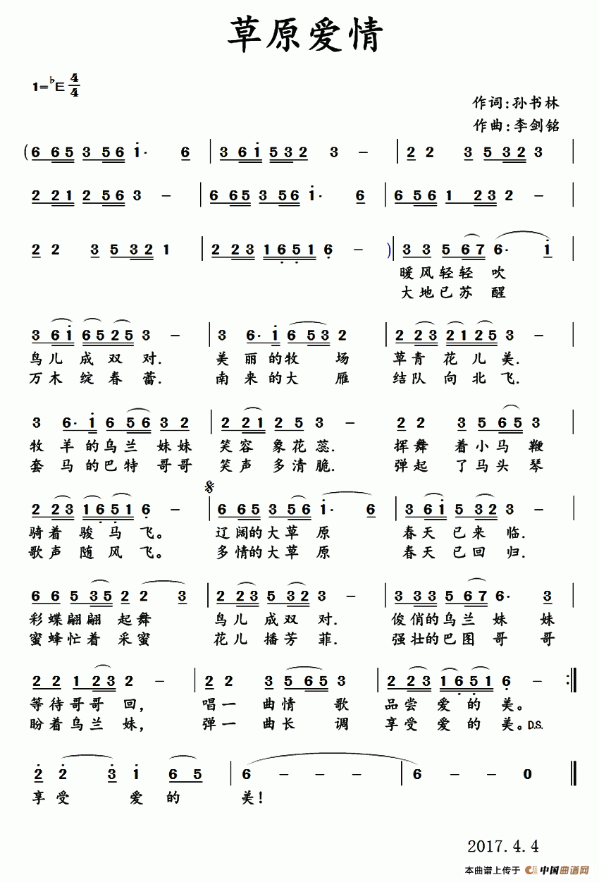 关于《草原爱情》曲谱的评论