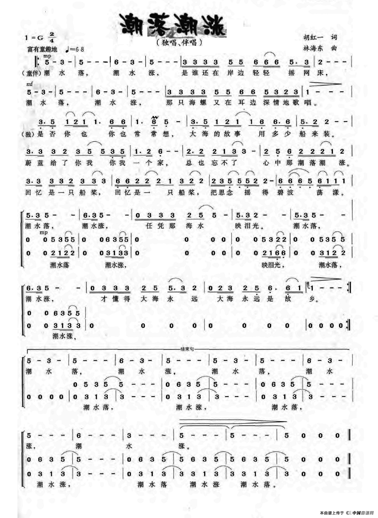 关于《潮落潮涨》曲谱的评论