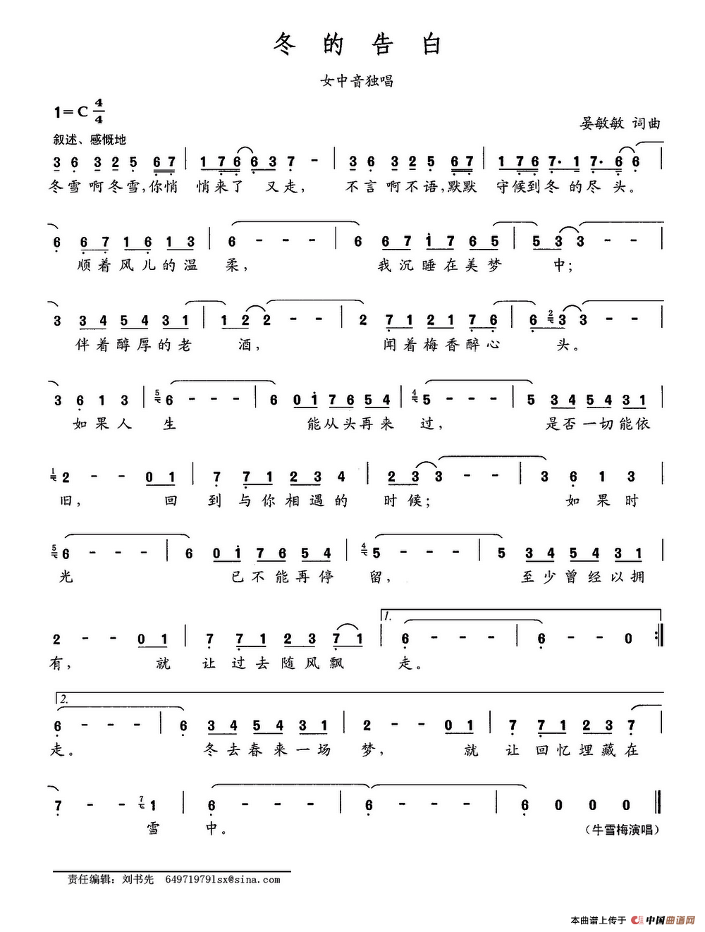 关于《冬的告白》曲谱的评论