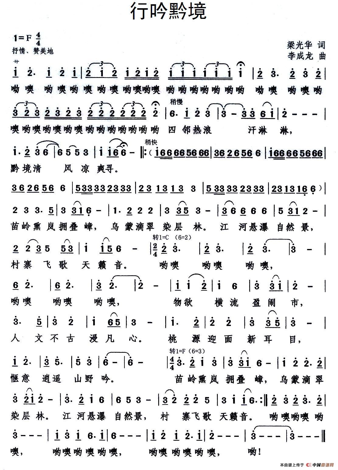 关于《行吟黔境》曲谱的评论