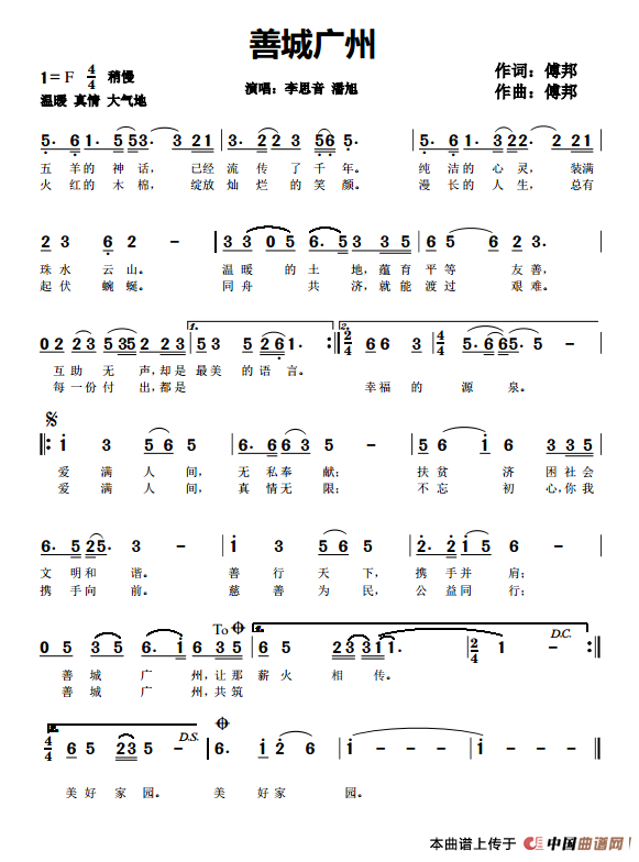 这是一首专为广州市创建全国慈善之城而写的主题曲。