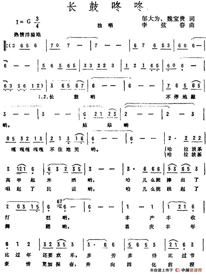 关于《长鼓咚咚》曲谱的评论