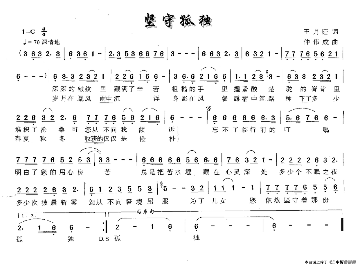 当前位置: 首页 民歌曲谱 四字歌名 坚守孤独