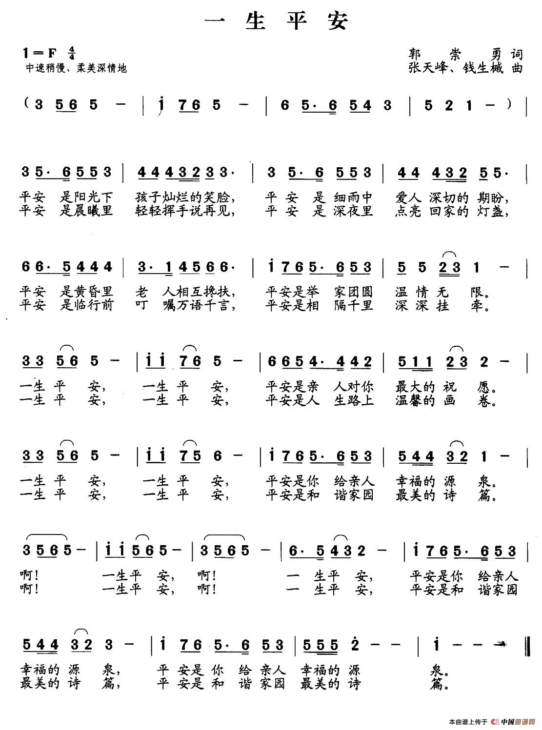 一生平安(郭崇勇词 张天峰 钱生械曲)