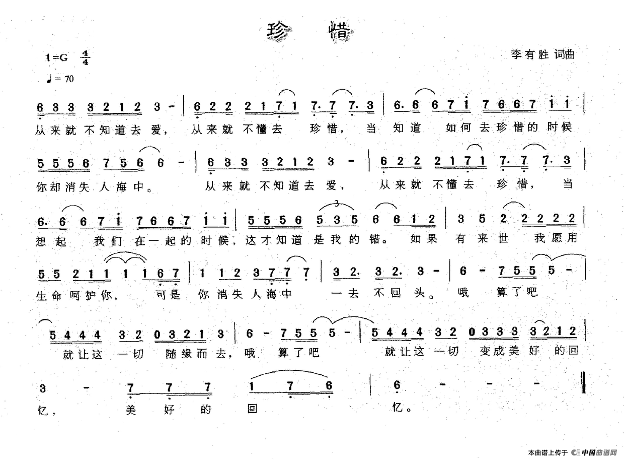 作词:李有胜 作曲:李有胜 来源:《中国曲谱网》 上传:沉舟侧畔过