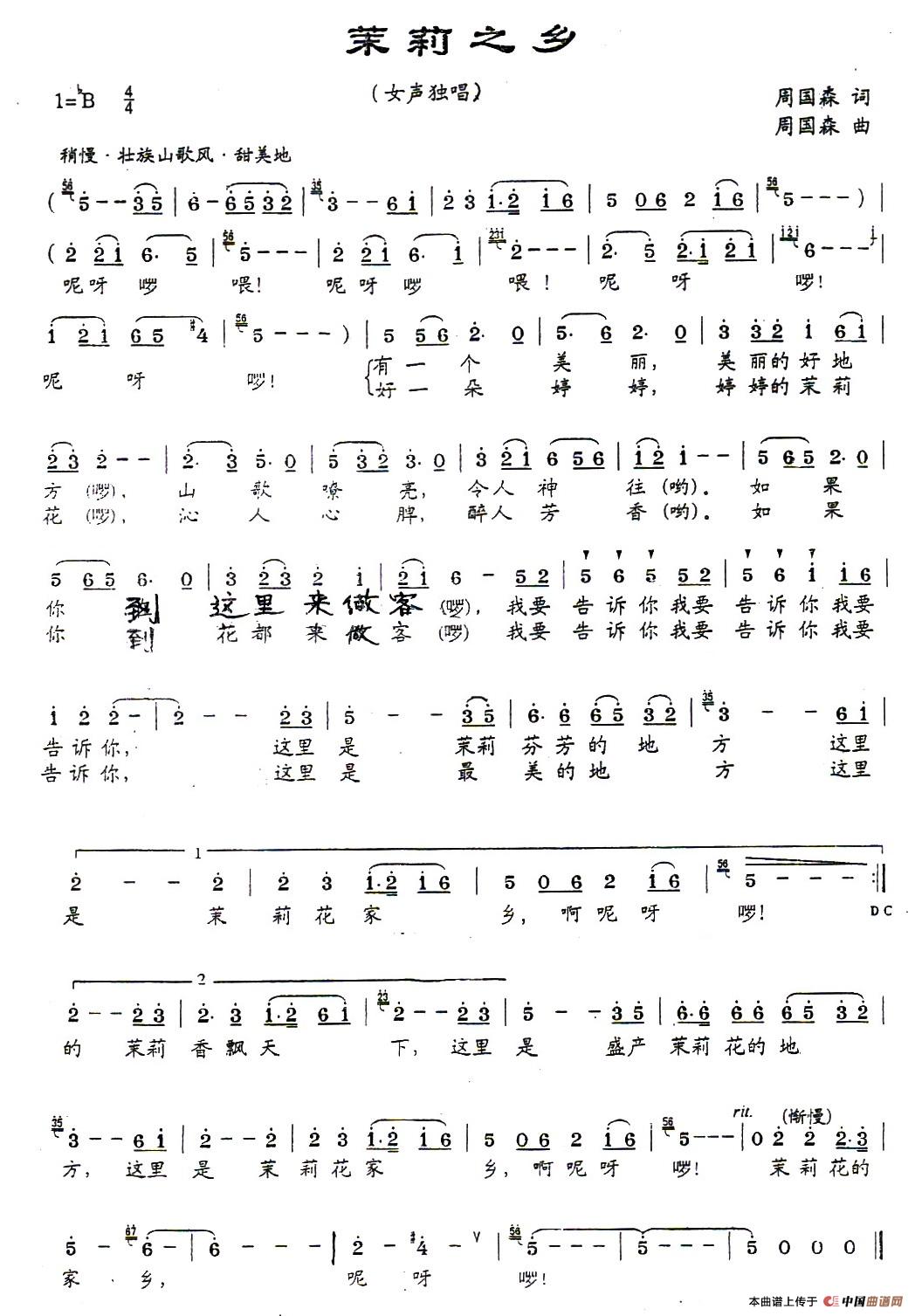 关于《茉莉之乡》曲谱的评论