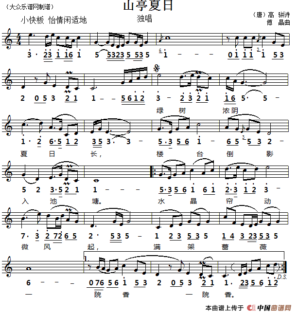 山亭夏日(线简谱对照版)
