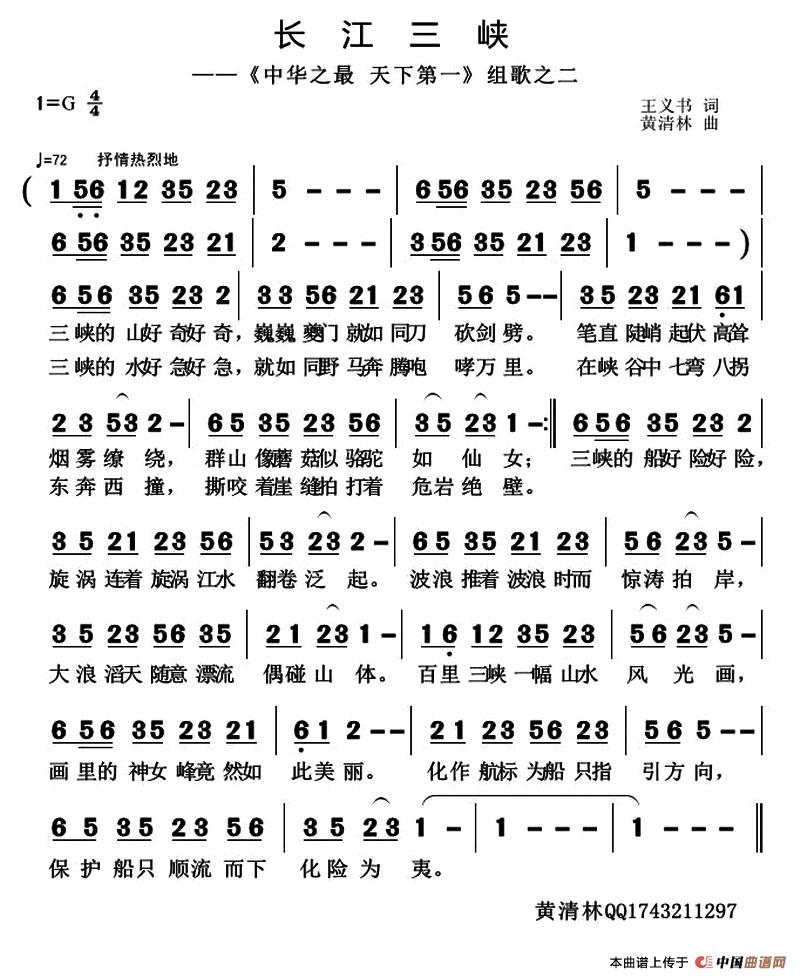关于《长江三峡》曲谱的评论