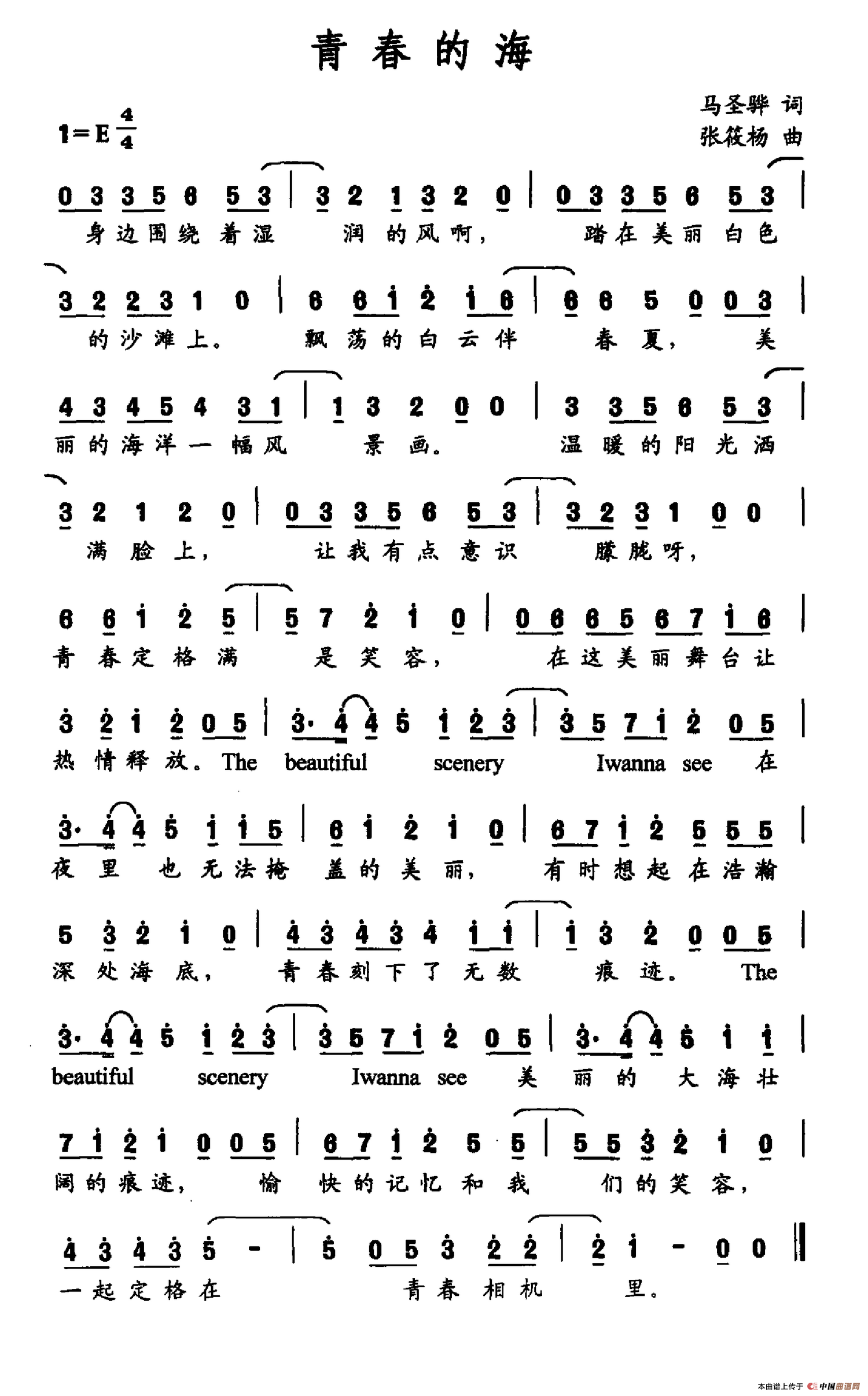 作词:马圣骅 作曲:张筱杨 来源:《中国曲谱网》 上传:沉舟侧畔过